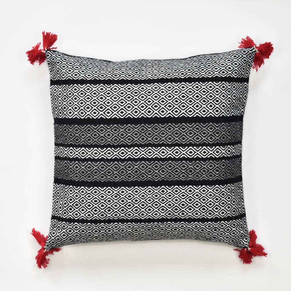 Hand Woven alpaca blend Cushion Cover, “Geometric at black and whitet”